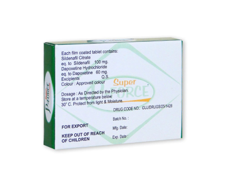 Formula acestui medicament este unică în sensul că conține două substanțe active diferite în loc de una, care acționează în paralel. Datorită noii combinații de Sildenafil/Dapoxetină (100 mg/60 mg), Super P Force este inclus într-o clasă separată de medicamente.